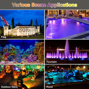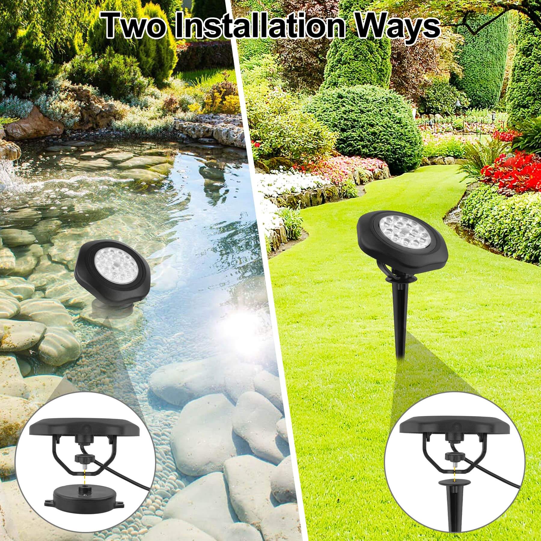• Complete with accessories, the base can be fixed in the water, used as underwater lights, can also be installed on the ground or wall, used as landscape lights, either way, perfect for pool, pond, garden, path road, and other decoration & lighting.