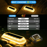 • 🔋【Upgrade 1200mAh Battery】T-SUN solar deck light are equipped with high conversion rate solar panels and 1200mAh capacity battery that absorb sunlight quickly, charging only 6h under sufficient light. This solar powered driveway lights able to provide lighting for 8-12 hours after being fully charged that provides a safe and comfortable experience for you!