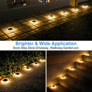 • 【360° Wide Angle Lighting】 TSUN Outdoor Solar Deck lights are made of polycarbonate (PC). Compared with plastic or metal materials, the transparent PC shell not only maximizes light transmission, but also resists pressure and corrosion, so you don't have to worry about easy damage or rust. Each light has 12 leds which gives out Intensityt and steady light. 360° Wide angle illumination can provide excellent brightness and larger lighting coverage. Perfect for docks, decks, paths, gardens, steps, stairs, patios, posts, etc.