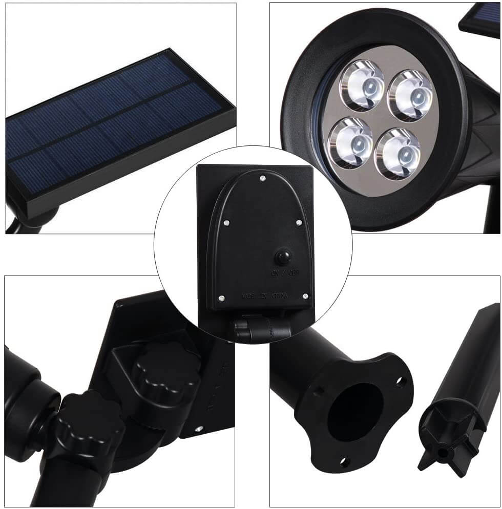 • Adjustable Solar Spotlight: The solar light is 90 degree adjustable and the solar panel is a 180 degree adjustable unit to use lighting exactly where you need it and capture sunlight at the best angle for charging.