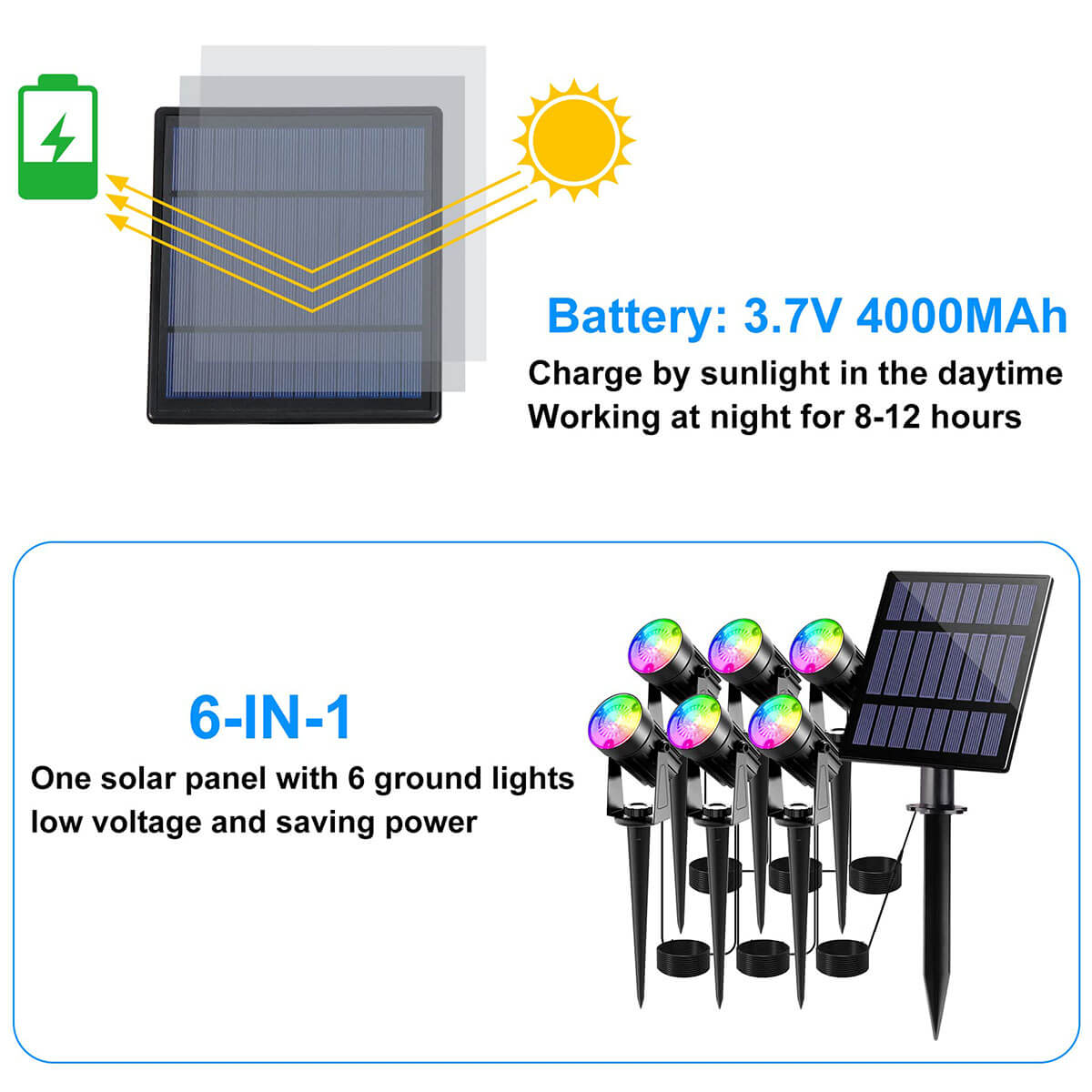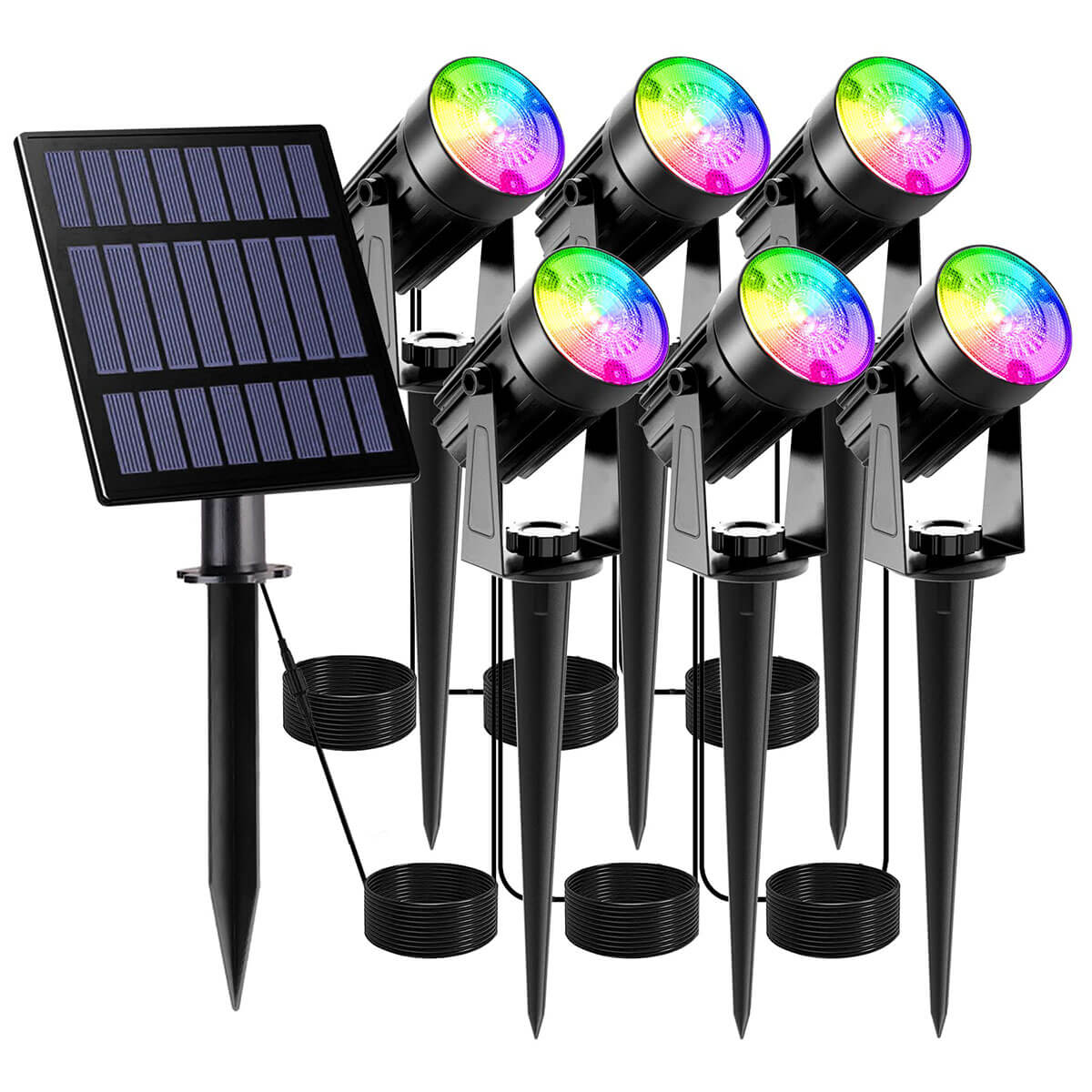 6-in-1 solar landscape spotlight with multiple color modes