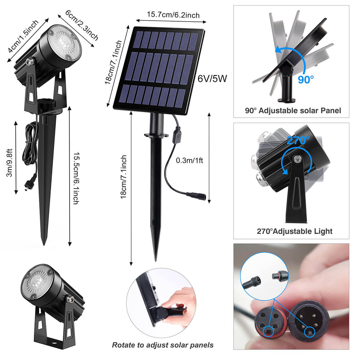 6 in 1 solar landscape spotlight wire length
