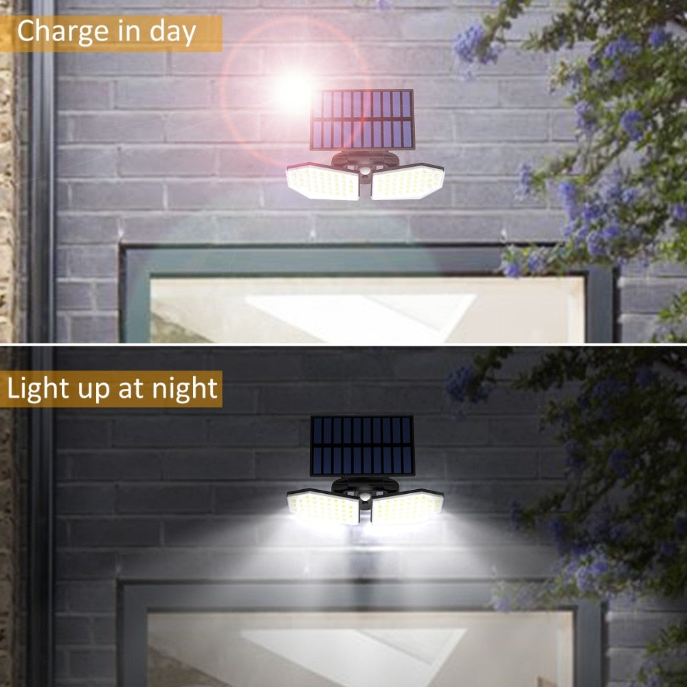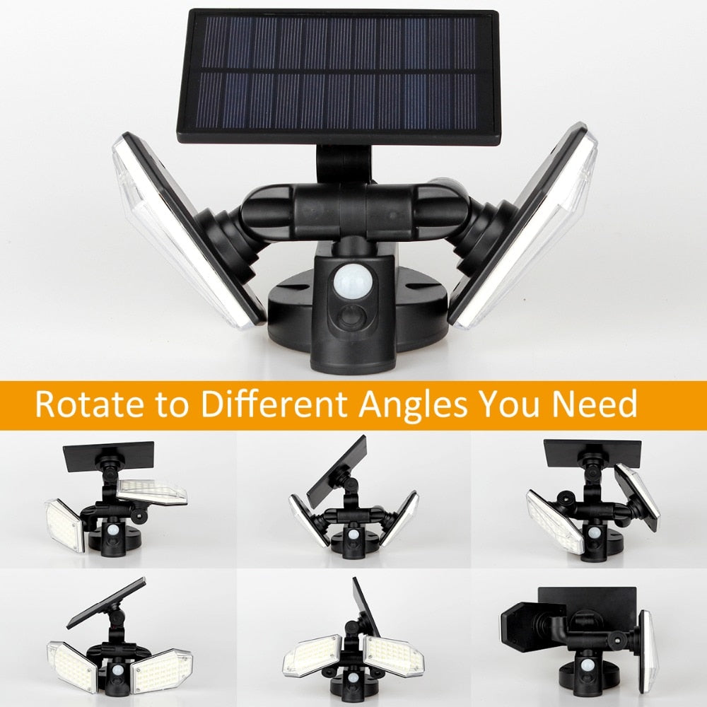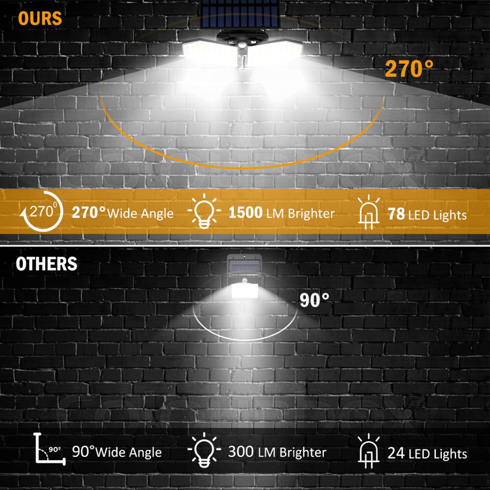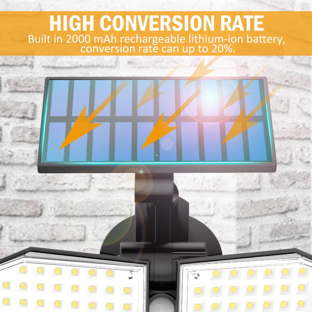 - Double head outdoor solar wall lights: T-SUN Solar motion sensor lights have 360 ° solar panel and 360 ° rotating spotlight, providing good brightness coverage, you can easily point the spotlight in the directions desired.
