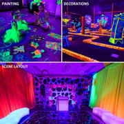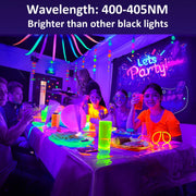 • [200W High-Efficiency LED Blacklight] T-SUN 200W black light outdoor features 216 premium SMD LEDs, delivering 50%-80% energy savings vs traditional fluorescent blacklights. With 120° wide-angle beam, each outdoor black light could light up a 1937 sq.ft area, it’s great for spacious glow parties, haunted houses, stage effects, body art, and neon glow in the dark