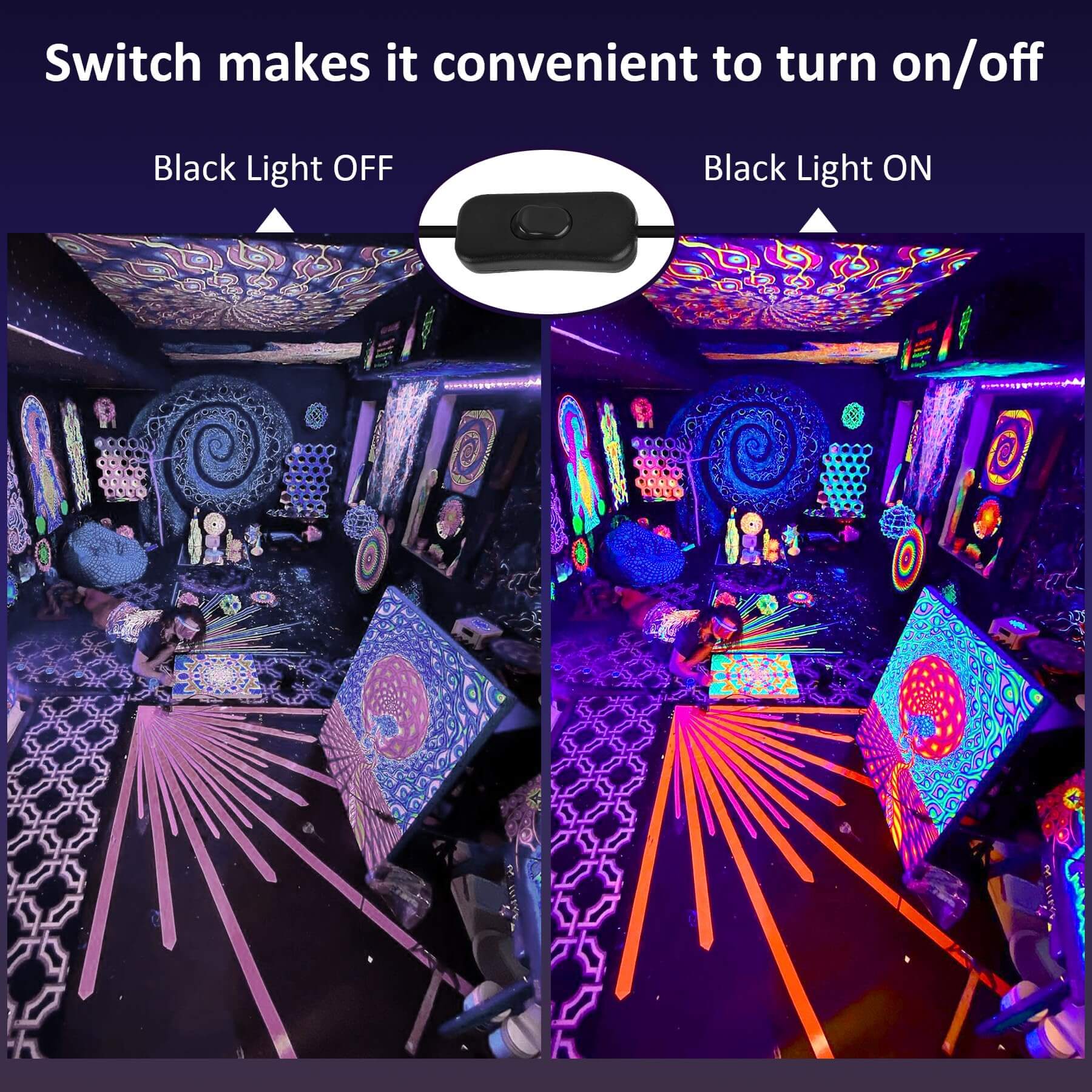 • [3 Installation Ways & 180° Adjustable] Mount on wall/ceiling/floor via screws or spikes. 180° adjustable bracket directs led black light precisely. 1.8m cable with US plug for hassle-free setup